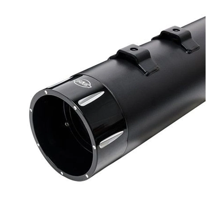 Do you want to make your M8 bike sound like it should? S&S has the solution you are looking for. Mk45 Slip-On Mufflers are the result of decades of riding, racing and tuning. Combining both a stainless steel perforated core baffle with RaceTEX cartridge packing, they create a deep rumble and improved horsepower and torque, all while adding a unique look with styled aluminum end caps.