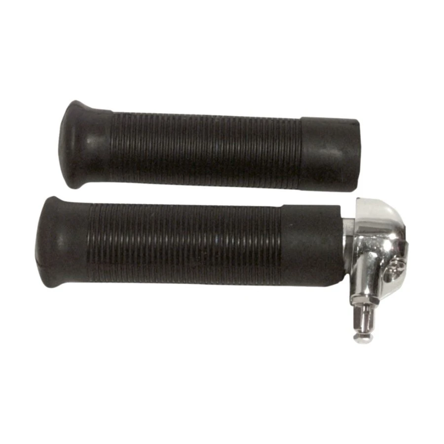 Universal 7/8″ throttle & grip set. The grips are vintage jackhammer style. This throttle works well with stock XS650 cables and will work for most Triumph, BSA, Yamaha, Honda or any other bike with 7/8″ bars. These are a single-pull throttle. Includes throttle assembly with grip and left hand grip.