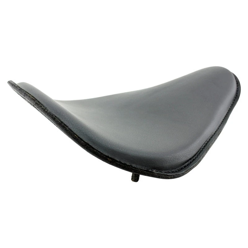 HIGH QUALITY BLACK THIN HIGH BACK SOLO SEAT FOR CHOPPERS AND BOBBERS BOTTOM OF SEAT IS COMPLETELY COVERED IN LEATHER AS WELL AS THE TOP. SEAT FEATURES 5/16″-18 MOUNTING STUDS. SEAT IS 10″ WIDE BY 13″ LONG. 3″ FRONT BOLT SPACING, 7″ IN REAR BOLT SPACING. WILL WORK WITH ANY OF OUR SEAT MOUNTING KITS MADE IN USA!