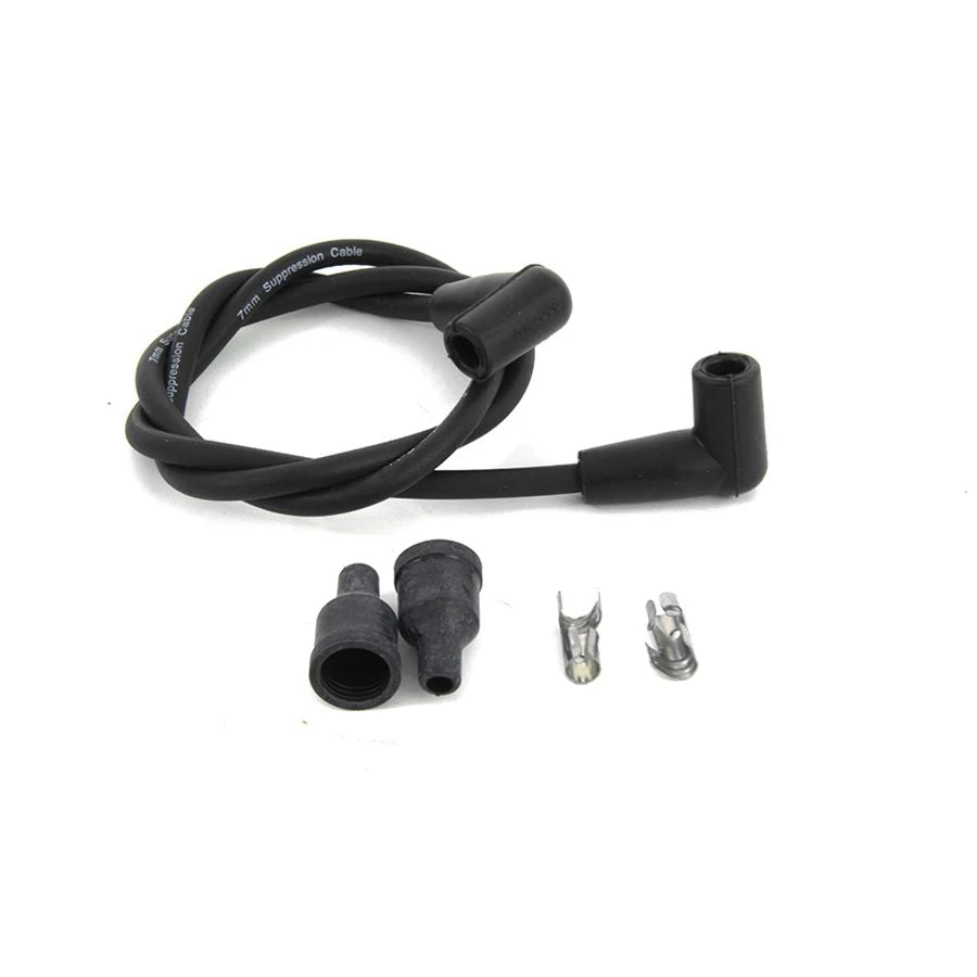- Black 7mm suppression core type. Simply cut to the desired length and install supplied coil terminal clips.