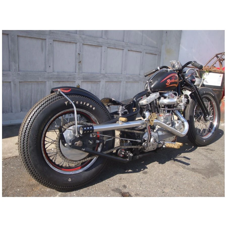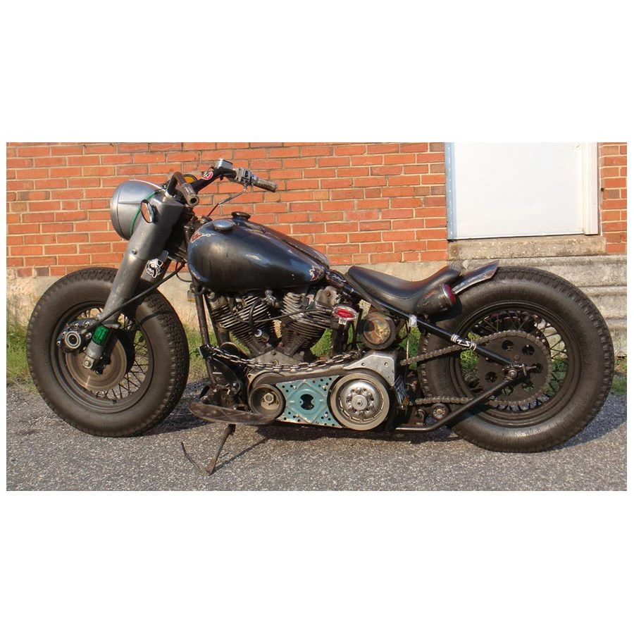 Monstercraftsman chain tensioner featuring heavy duty mild steel brackets machined and powder coated, ready to bolt onto on your bike! The spring is hand wound stainless steel for MAX tension. This tensioner is used to keep the chain tight automatically which avoids chain slap which can cause drive issues as well as damage to fenders and frames. The tensioner can be placed in virtually any location in your drive line. This item was designed to be completely universal to all makes and models. The skate wheel can be used with all sizes of drive chain.