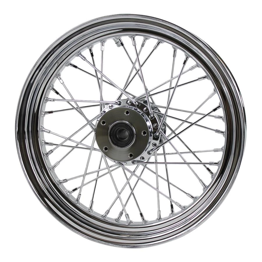Moto Ironâ„¢ Complete Chrome Front 40 Spoke Wheel 16″x 3″ fits Harley FLST 1984-1999 (fits Moto Iron Springers) Billet Hub.