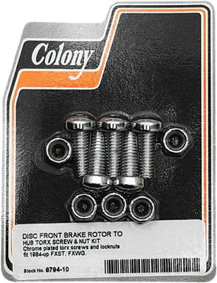Disc Front Brake Rotor to Hub Chrome plated torx screws and locknuts fit 1984-up FXST, FXWG. Made in the USA!
