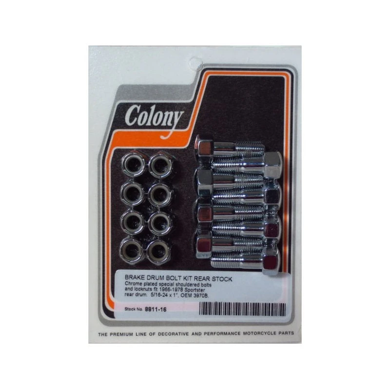 Colony #8811-16 Chrome Rear Brake Drum Bolt Kit Harley Ironhead Sportster XL 1952-