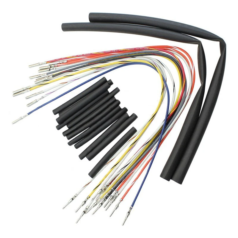 Complete cable/line install kit for Harley Sportster XL 2004-2006 with 12″ Ape hanger handlebars. This includes everything you’ll need to install your handlebars. Black Braided steel brake lines, Black clutch cable, Black throttle cables, All necessary wiring (color coded), connectors and shrink tubing.