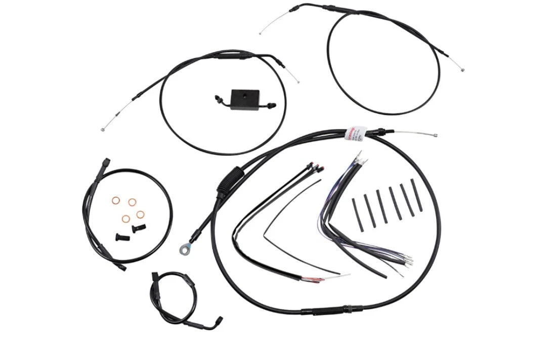 - Includes a bar length specific extended brake line, extended clutch cable and extended wiring for installation