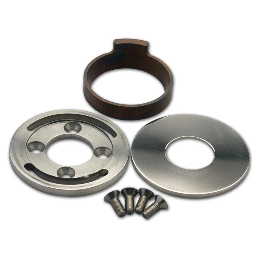 Designed for “Hourglass” style necks that do not have press-in neck cups and where the bearing race installs directly into the neck. Polished Stainless Steel. This kit is used in necks that are 7″ long. Used on later stock Harley-Davidson frames and many aftermarket custom frames. Fits all Pro-One Triple Trees and other brands with 4 pre-drilled holes. On brands without the necessary holes, kit can still be installed by drilling and tapping 4 holes. Easy to follow instructions included. Bearing Race fits 1.990″ neck bore. Measure the neck bore where the races install in the neck, or the length of the neck to be sure this is the kit you need.Â