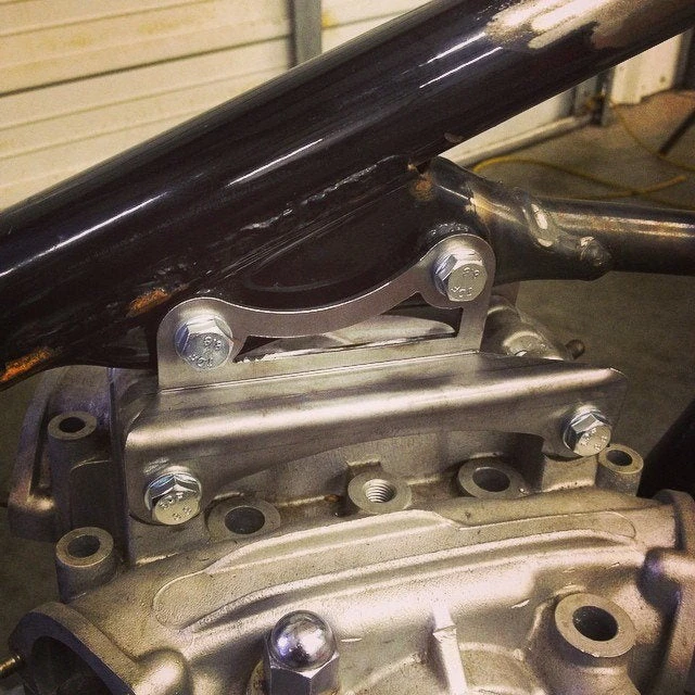 Hugh does it again! Keeping things simple. Replace your stock 6 peice motor mount with this slick Hughs HandBuilt XS650 Top Motor Mount. This also allows you to mount wassel tanks to your XS if you use thin hex nuts (jam nuts) and cut the excess threads off flush.