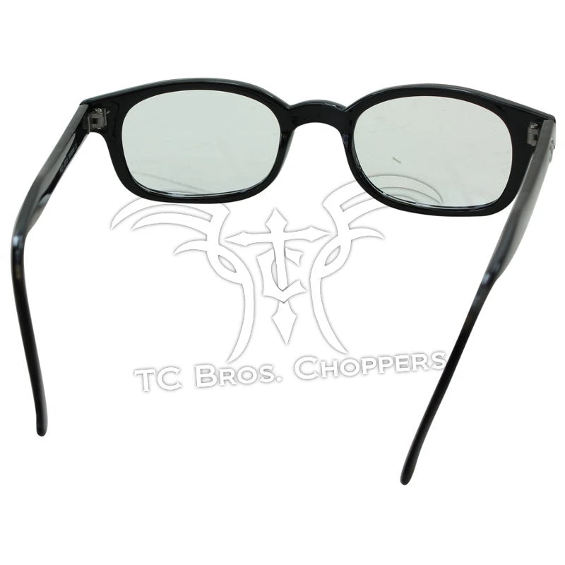 These sunglasses have a die-hard following, incredible fit, and slim arms which make them wildly popular. People often buy a few pairs at a time just to have that extra clear pair for night riding or yellow for the early morning haze. Lightweight design fits comfortably under a helmet. (Clear Lens/ Black Frame.)