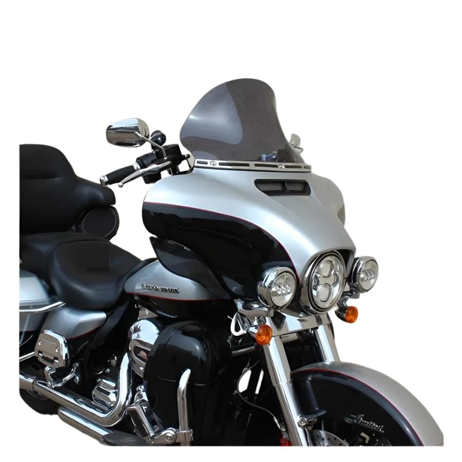 Do you love everything about your FLH but the windshield? No problem, Klock Werks has built this for you! The innovative, patented, design features “hips” at the outer edge of the shield that re-route the air to add downforce to the front of the bike, improving stability vs riding with a stock shield. The “flip” at the top of the Flare™ is designed to kick the air up and back as “clean”, less turbulent air for the rider and passenger.