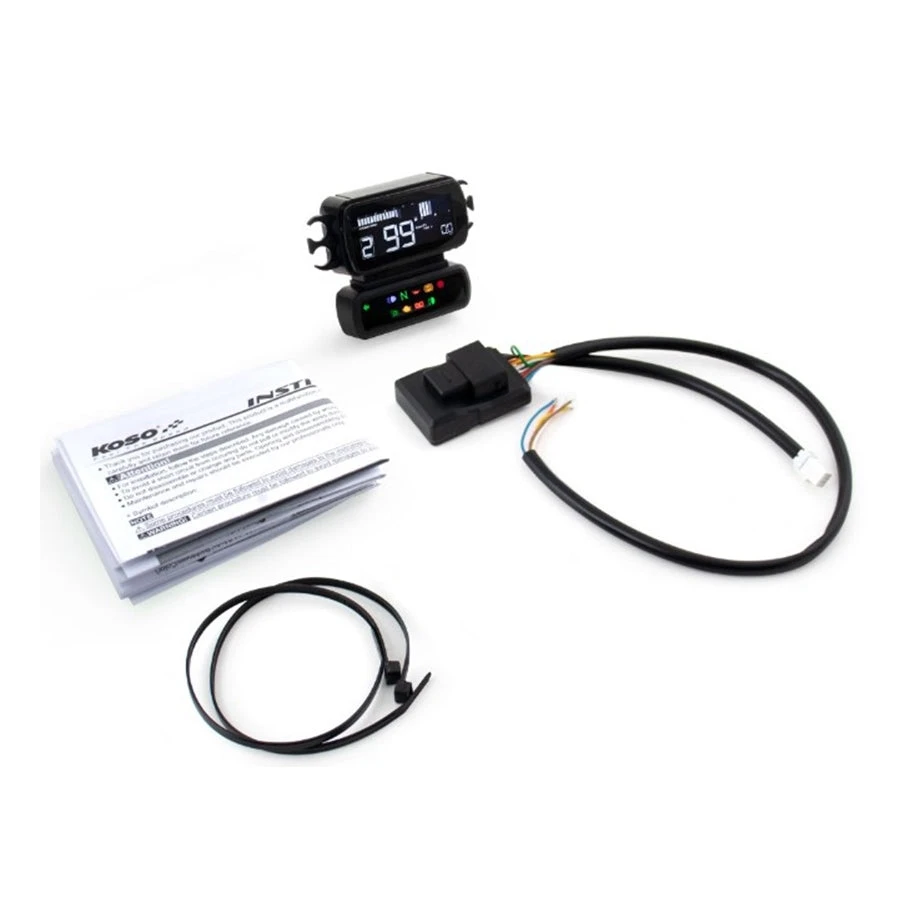 - Features a tachometer/speedometer combination with a programmable shift light and includes gear indicator