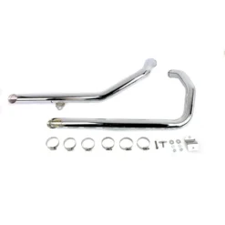 1-3/4″ drag pipe set with a 2″ full coverage form fitted heat shield set, both featuring a chrome finish.