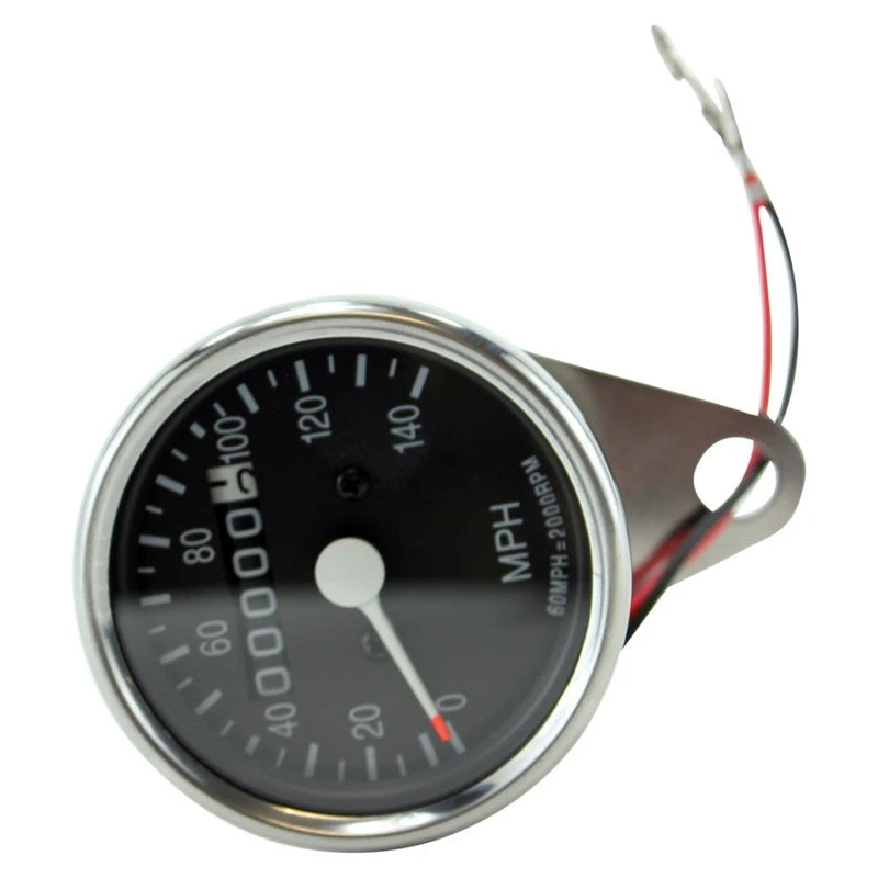 140 MPH Speedometer Includes a chrome mounting clamp and speedo cable. 12 Volt, Lighted, 2 -1/2″ diameter face.Â