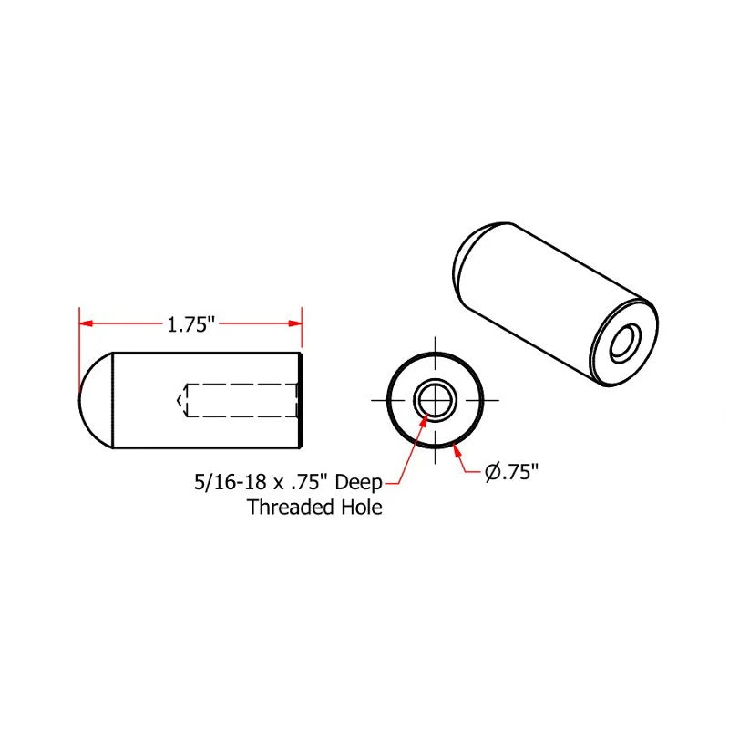 Proudly made in the USA from premium American 1018 cold rolled steel for easy welding. 3/4″ diameter x 1-3/4″ long. See photos for all dimensions.