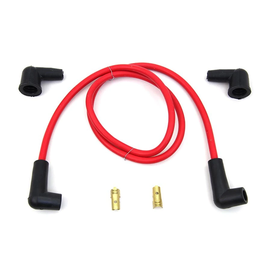 Looking to squeeze some more performance out of your motor and look great while doing it.? We have just the product for you. These high performance 7mm red silicone jacketed spark plug wires will assure that you are getting plenty of spark to your motor. They feature heavy duty 90 degree black plug boots and black coil boots with crimp on connectors. Just cut to length and crimp on the end. Easy as that!