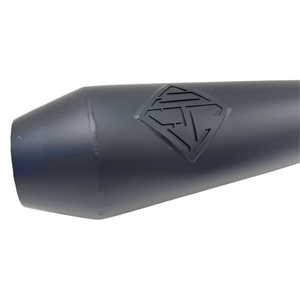 - 4” ROLLED CONE MUFFLER WITH A 2 ¼ COILED PERFORATED BAFFLE FOR INCREASED TORQUE AND A DEEP TONE