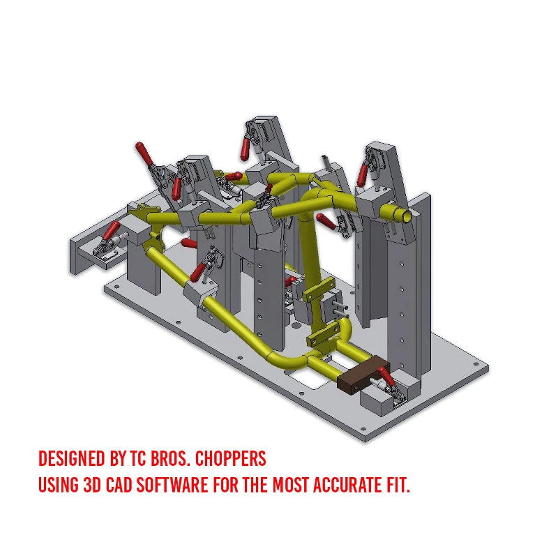 This frame is constructed from .120″ wall (approximately 1/8″) American Made Steel Tubing that is bent using a precision CNC Mandrel Bender for the ultimate in smooth bend quality and accuracy. All tubing is sized to match stock outer diameter and is slugged at all frame attachment points for a high strength, seamless looking install that makes your stock frame look like a 100% custom made frame, without all of the title/registration headaches. Hardtail is designed using the latest 3D CAD Software and is built right here in the USA using a precision made, 100% CNC Machined Welding fixture for the best fit in the industry. High strength axle plates are CNC Laser cut from 3/8″ Thick American Made Steel plate. They feature classic styling, an integrated fender strut hole, as well as threaded axle adjusters for your convenience. Due to increased width, a 1″ offset sprocket or pulley is required, as well as a longer axle (See TC Bros Part #104-0032). Due to stretch, a longer chain or belt (137 tooth belt) is also required. Most customers convert belt drive sportsters to chain drive for best performance, maximum frame clearance, and maximum cost savings vs belts.