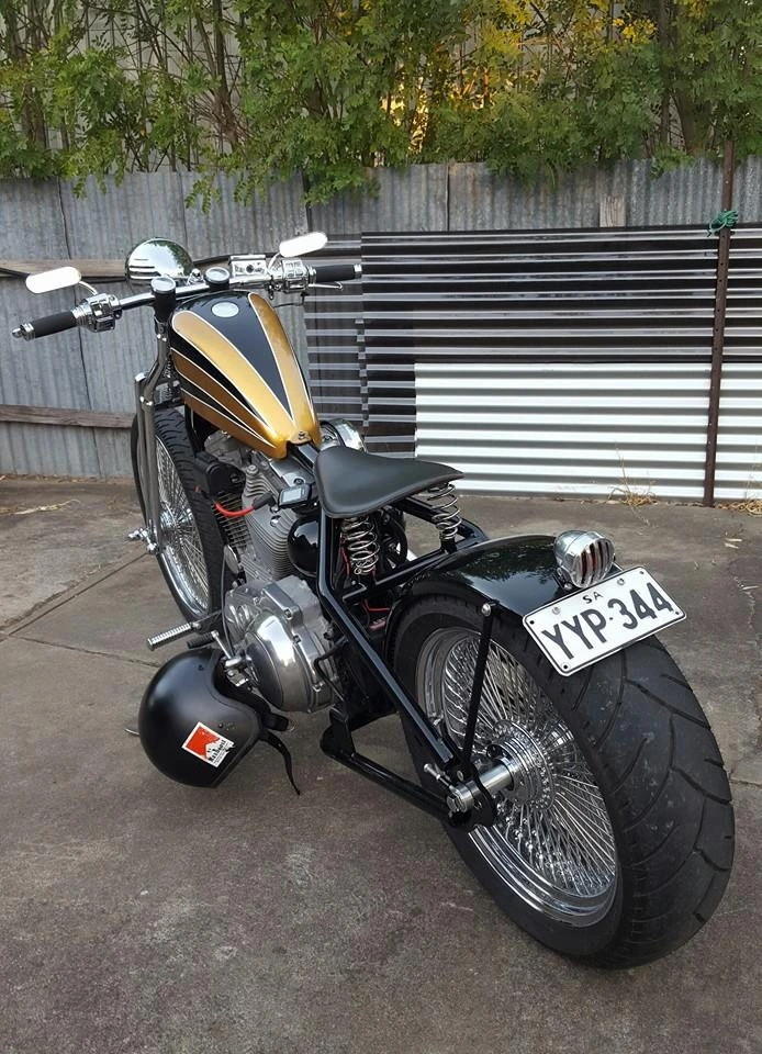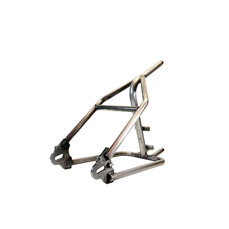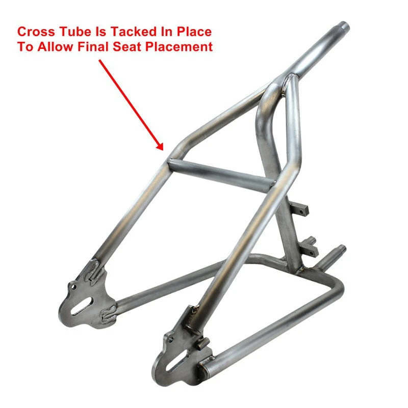 TC Bros Weld-On Harley Sportster Hardtail kit for wide wheel and tire applications (5.5″ wide wheel and 180-200 series tire required). 100% Made in the USA quality. Fits all 1982-2003 Harley Davidson Sportster Models (883, 1200, and 82-85 Ironhead). Includes easy-to-follow, detailed installation instructions as well as mounting hardware. This is the highest quality, most complete kit on the market, for the best price anywhere! Hardtail incorporates 2″ of stretch and 5″ of ground clearance for a great looking stance with a stock length front end.