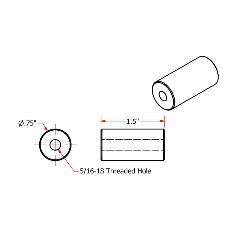 Save time and create a super strong mount for just about anything on your bike using these fully threaded bungs. Proudly made in the USA from premium American 1018 cold rolled steel for easy welding. The extra long length of these bungs allows you to install bolts from both sides simultaneously, or you can easily trim to the exact length your application requires. These bungs are 3/4″ diameter x 1-1/2″ long are are tapped through with 5/16-18 threads. See photos for all dimensions. Sold in pairs.