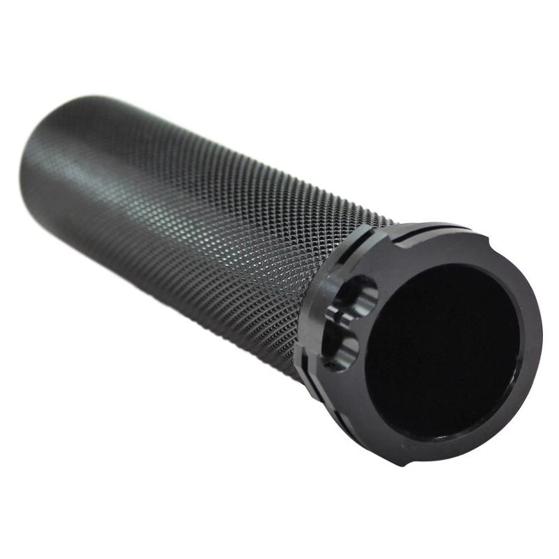 TC Bros. black 1″ billet aluminum throttle tubes are CNC machined with a knurled finish to accept a huge variety of aftermarket rubber grips. These are more durable than the commonly found Harley plastic throttle tubes. Grip and Rip!
