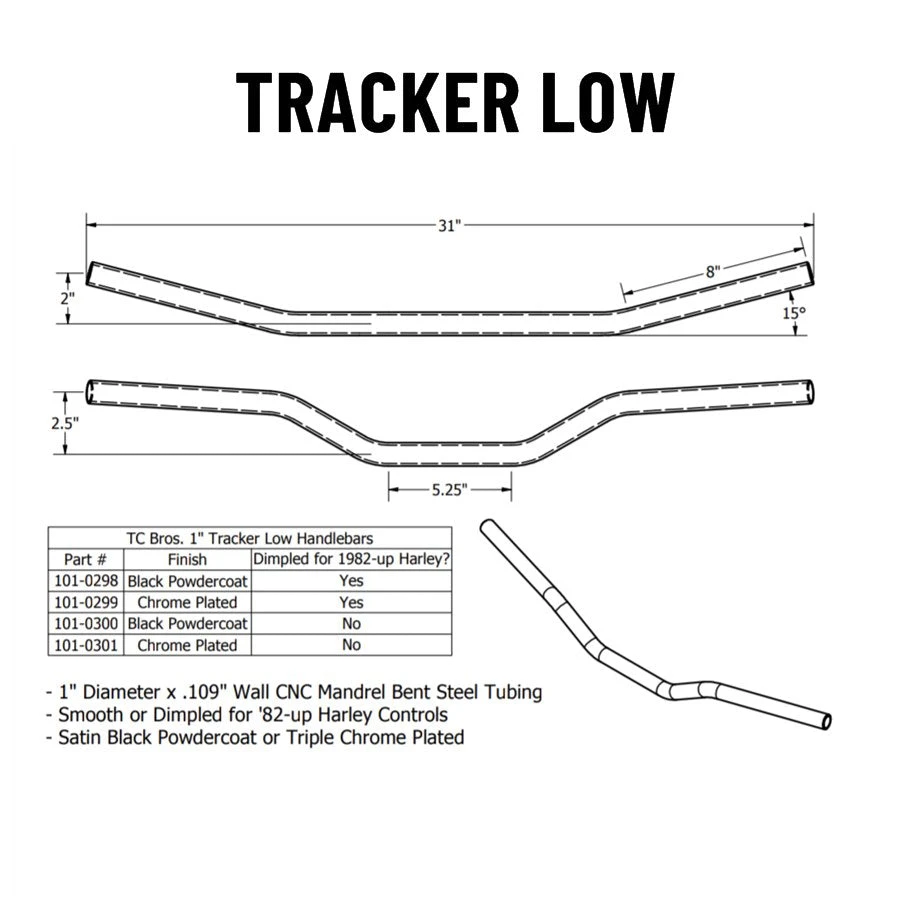 TC Bros. 1″ Tracker Low Handlebars – Chrome (Dimpled or Non-Dimpled)