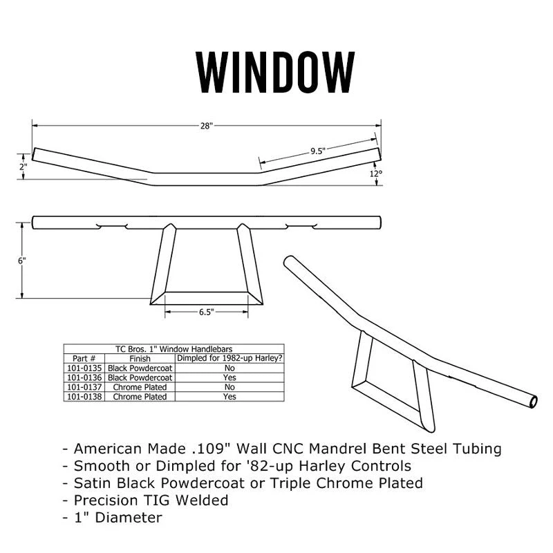 TC Bros. 1″ Window Handlebars – Black (Dimpled or Non-Dimpled)