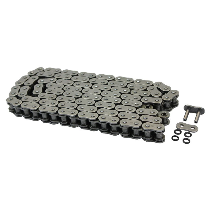 X-ring chains beat out plain chains and even sealed chains using O-rings because they have twice as many sealing surfaces—they offer a second chance even if one seal surface fails. These chains come with a rivet-type master link for superior strength. Just cut or break the chain to proper length, rivet the master link, and you’re done. Due to the high tensile strength of these chains, we recommended them for use with our Sportster chain drive conversion kits and large displacement motorcycles. At 120 links, these chains are long enough to work with our Yamaha XS650, Honda CB750, and 1982-2003 Harley-Davidson Sportster hardtail frames. 530 pitch.
