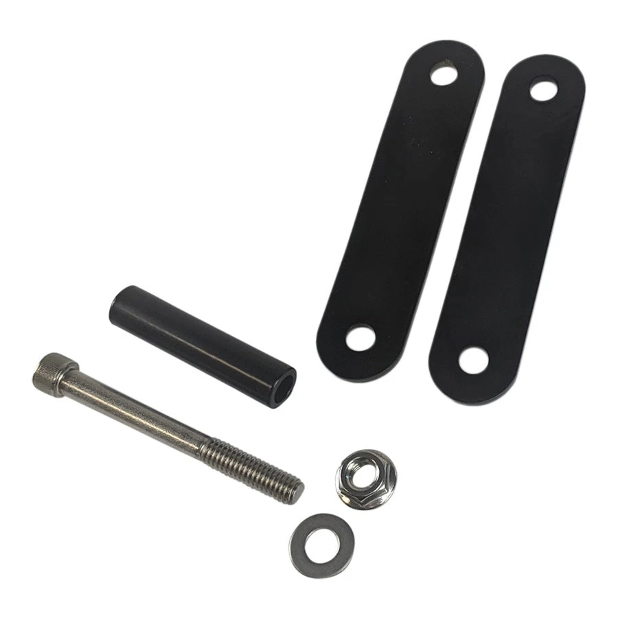 Kit includes 2 heavy duty steel mounting tabs, spacer tube, and high quality stainless steel mounting hardware. Finish is a durable black powder coat. Proudly Made in the USA!