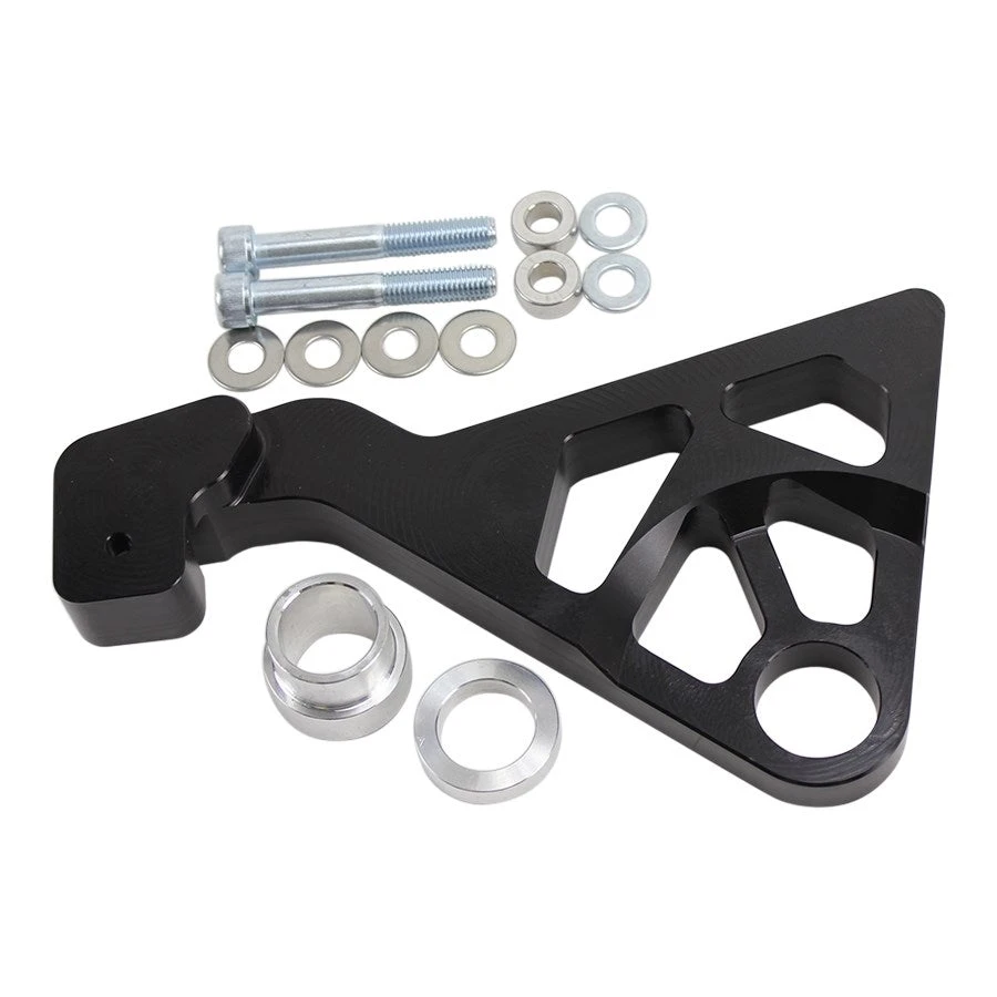 - CNC machined 6061-T6 billet aluminum adapter bracket is made in USA and fits directly to your stock swingarm.