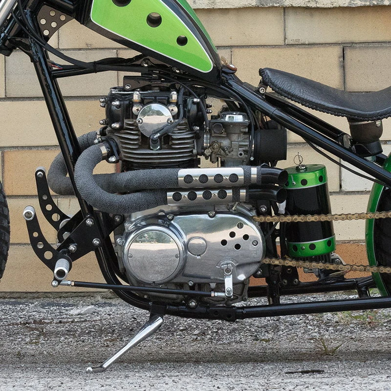 TC Bros. Black Fiberglass Exhaust Header Wrap. 2 inch wide 1/16 inch thick 50 foot roll. 50ft is usually enough for most twin cylinder motorcycle exhausts, we recommend 50ft for dual pipes such as Yamaha XS650 exhausts. Wrapping the exhaust system maintains hotter exhaust gases, decreasing the density, and allowing the exhaust gas to exit the system faster! By doing this, the engine breathes more efficiently, thus allowing the engine to develop more power! Rated for temperatures of 1000 degrees Fahrenheit continuous, 2000 degrees Fahrenheit intermittent. Use included stainless zip ties at the ends of the wrap to secure it.