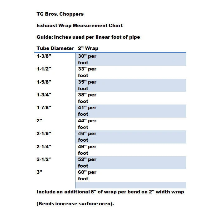 TC Bros. White Fiberglass Exhaust Header Wrap. 2 inch wide 1/16 inch thick 50 foot roll. 50ft is usually enough for most twin cylinder motorcycle exhausts, we recommend 50ft for dual pipes such as Yamaha XS650 exhausts. Wrapping the exhaust system maintains hotter exhaust gases, decreasing the density, and allowing the exhaust gas to exit the system faster! By doing this, the engine breathes more efficiently, thus allowing the engine to develop more power! Rated for temperatures of 1000 degrees Fahrenheit continuous, 2000 degrees Fahrenheit intermittent. Use included stainless zip ties at the ends of the wrap to secure it.