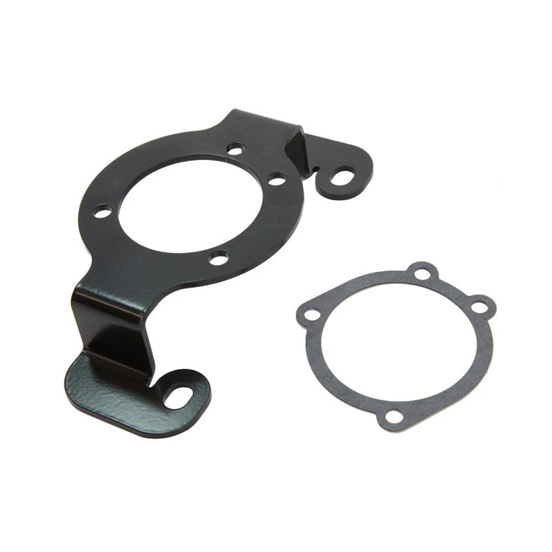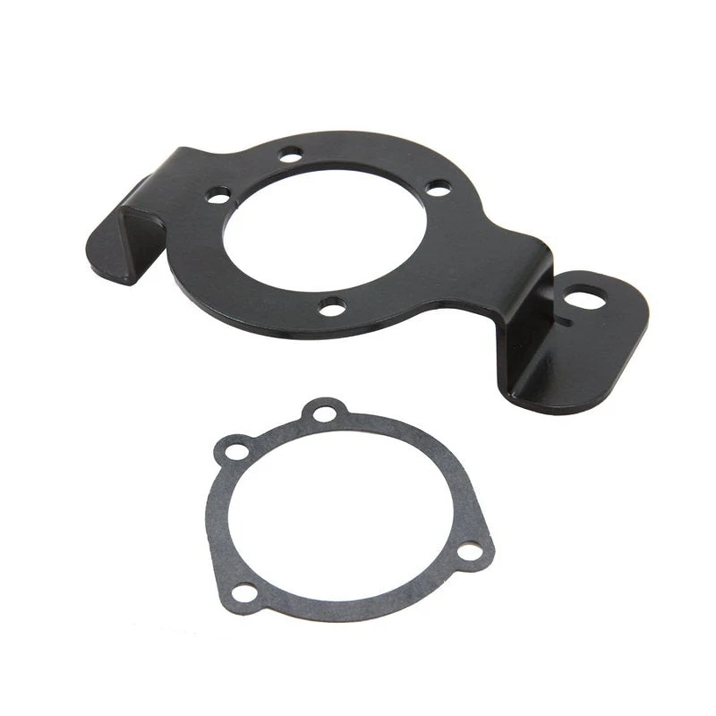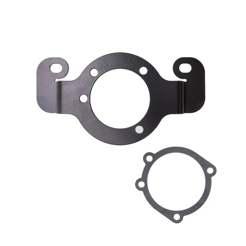 Our air cleaner/carb support bracket is a must when mounting aftermarket air filters to your stock CV type carburetors. Gasket Included. CNC laser cut steel bracket with durable black powdercoat finish.