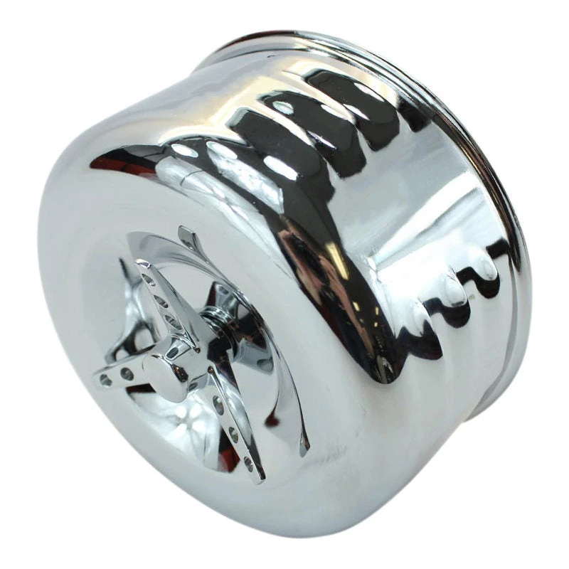 Ham can. Dog dish. Football. Ever notice that none of the nicknames for a factory air cleaner are very flattering? It’s because they lack a certain aesthetic appeal. Replace that factory-style air cleaner and show off your v-twin engine with this TC Bros. Choppers chrome louvered air cleaner kit.