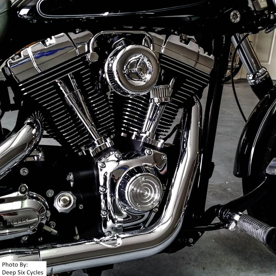 This kit includes a round head screw to affix the outer cover, as well as a tri-wing bolt for a touch of hot rod flair. This ultra-compact kit is designed to fit most Harley-Davidson Big Twin and Sportster models using factory CV carburetors or factory electronic fuel injection (EFI) throttle bodies; please see fitment notes for more detail. Detailed instructions are included.