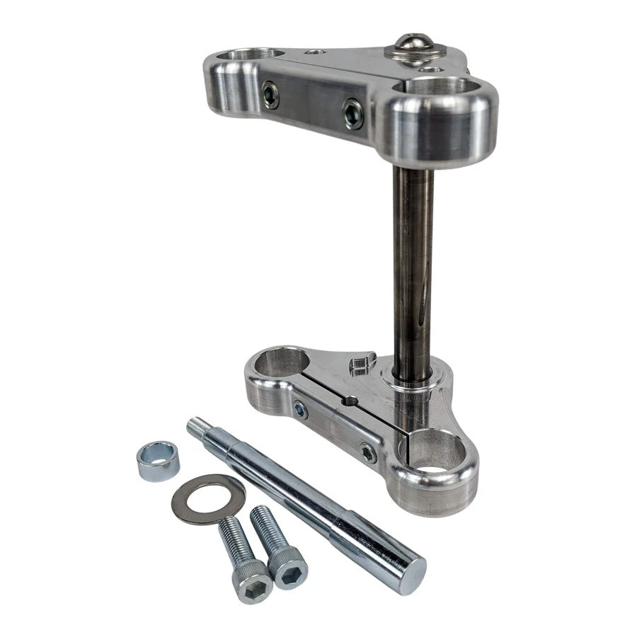 - Lower tree features integrated headlight mounting hole that fits most bottom mount style aftermarket headlights.