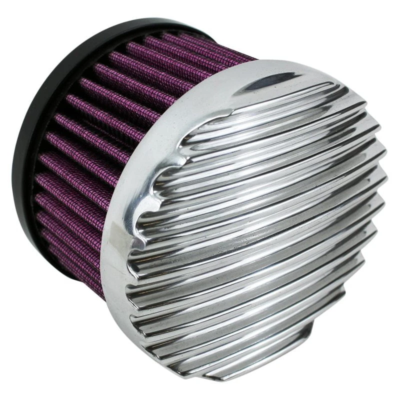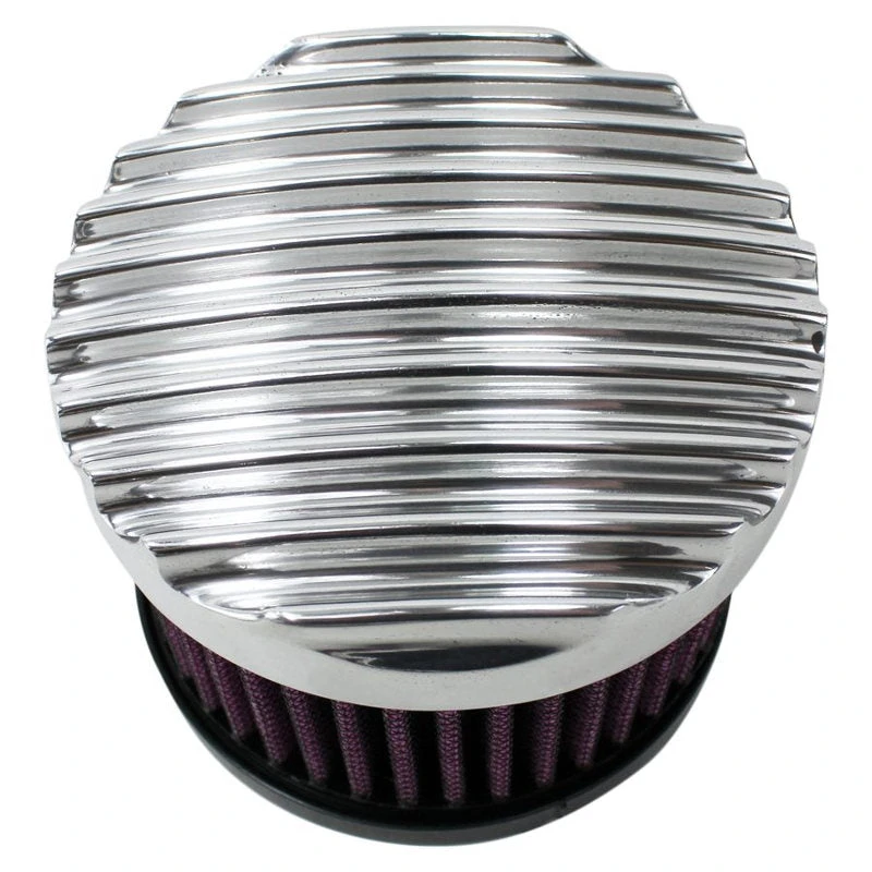 Add classic vintage style to your motorcycle with this TC Bros. Finned air cleaner in hand polished finish. The cover is beautifully hand cast from 356-T6 aluminum right here in the USA. Washable cotton gauze filter element provides high performance air flow to your V-Twin. Kit attaches easily using the American made, CNC machined, powder coated steel mounting bracket.