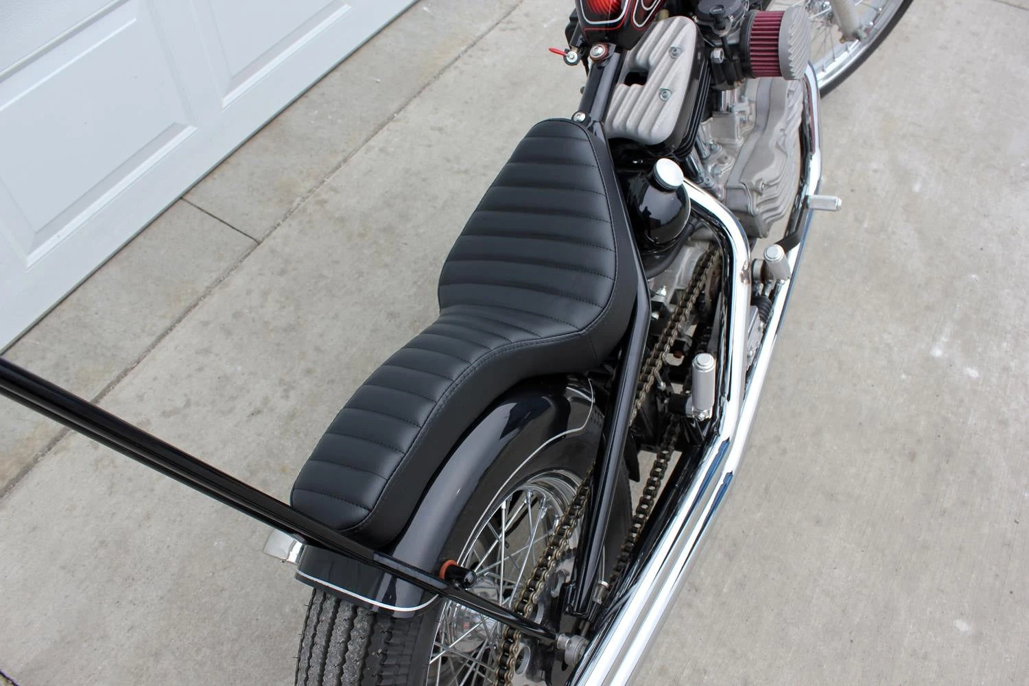 Five 5/16-18 threaded mounts on the heavy 14ga powder coated steel seat pan make it possible to fit these seats to many other hardtail frames as well. Hand stitched from 100% Marine grade vinyl, these seats look like leather but without the maintenance.
