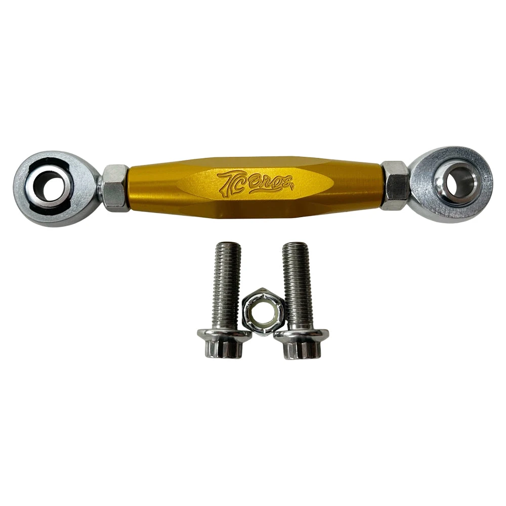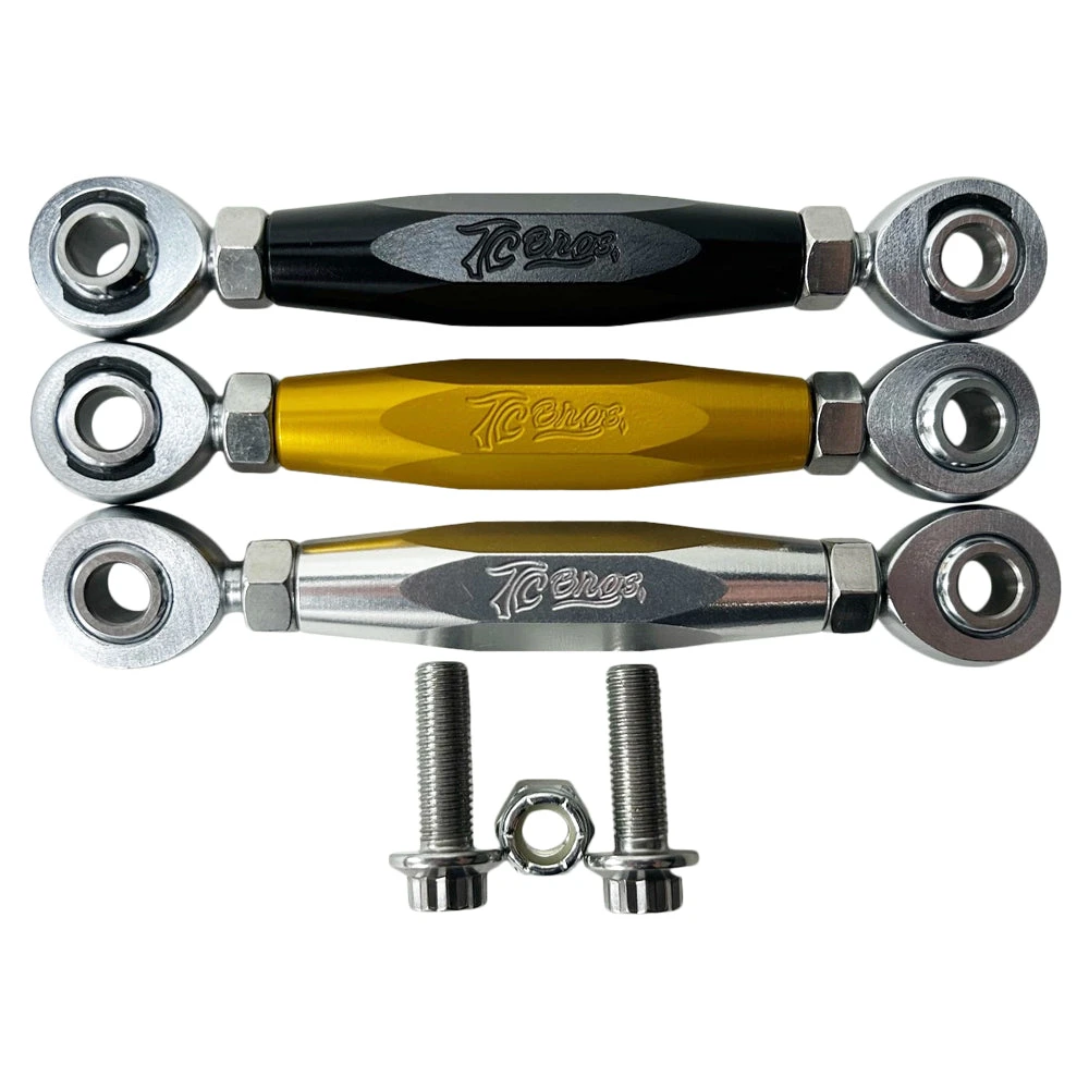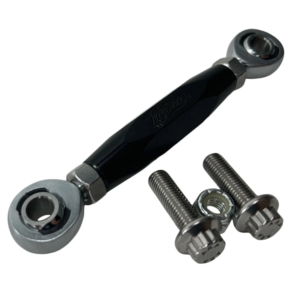 TC Bros. adjustable shift linkage for 99-17 Harley Davidson Dyna models with factory mid controls is designed to allow the rider to easily adjust the shift lever height. With a left and right hand threaded heim joint you can precisely dial in your preference for shift lever position. Hardware is included to replace the stock fasteners with ARP 12-points.