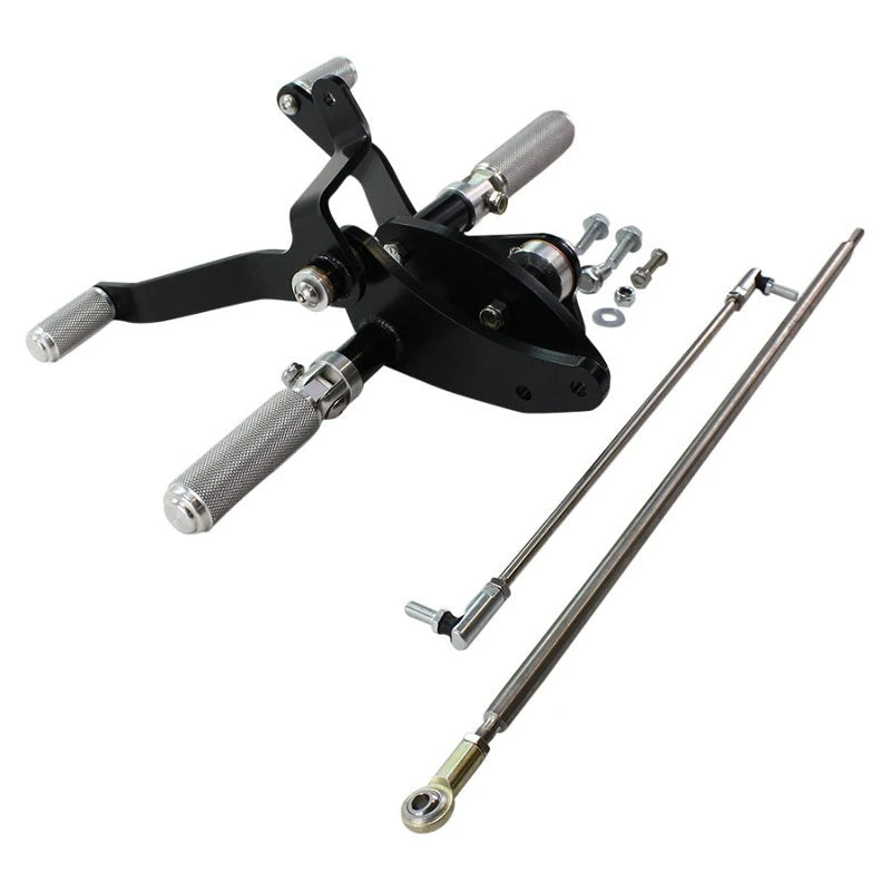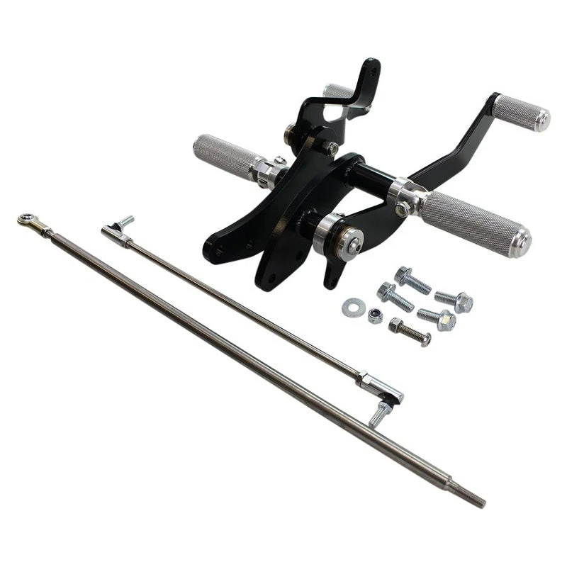 This kit features our Nomad footpegs, brake peg, and shift peg. They’re made of CNC-machined 6061 aluminum with a deep, non-slip knurled finish instead. The brackets and levers are also set up to accept OEM or aftermarket options, too. Don’t forget to pick up a matching set for your passenger if your bike is not set up for solo riding. Our shift shaft cap, also machined of aluminum, can help provide a cohesive, finished look to your conversion.