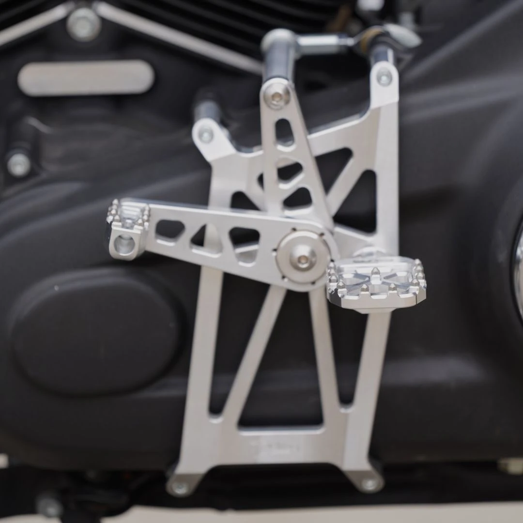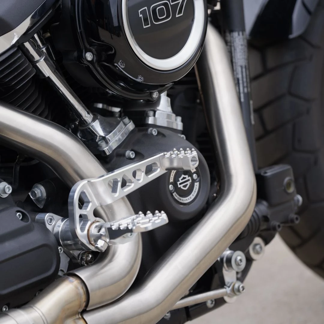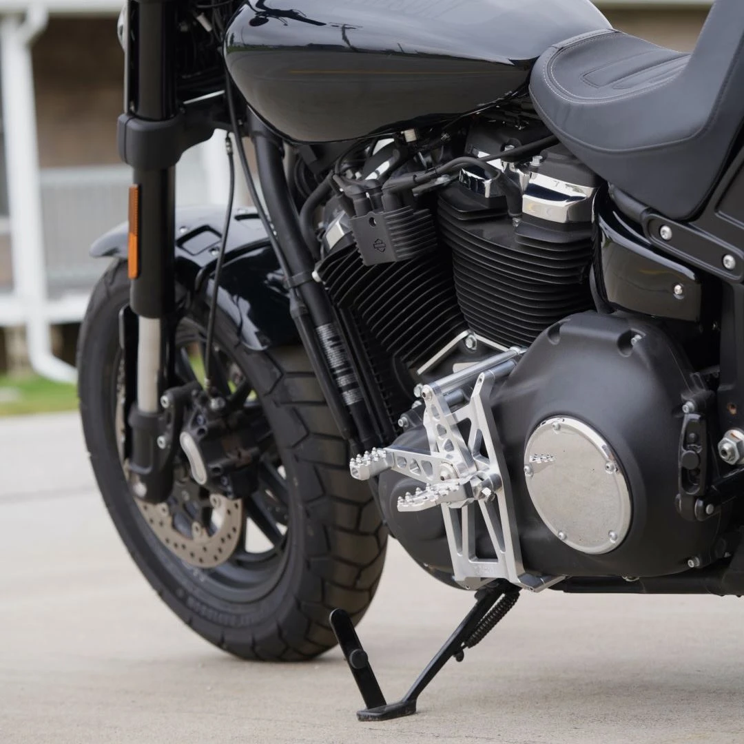 - When compared to OEM HD mid controls, the footpeg location is further rearward and inward to the engine, providing a true “mid controls” position and allowing for much greater lean angle during aggressive cornering.