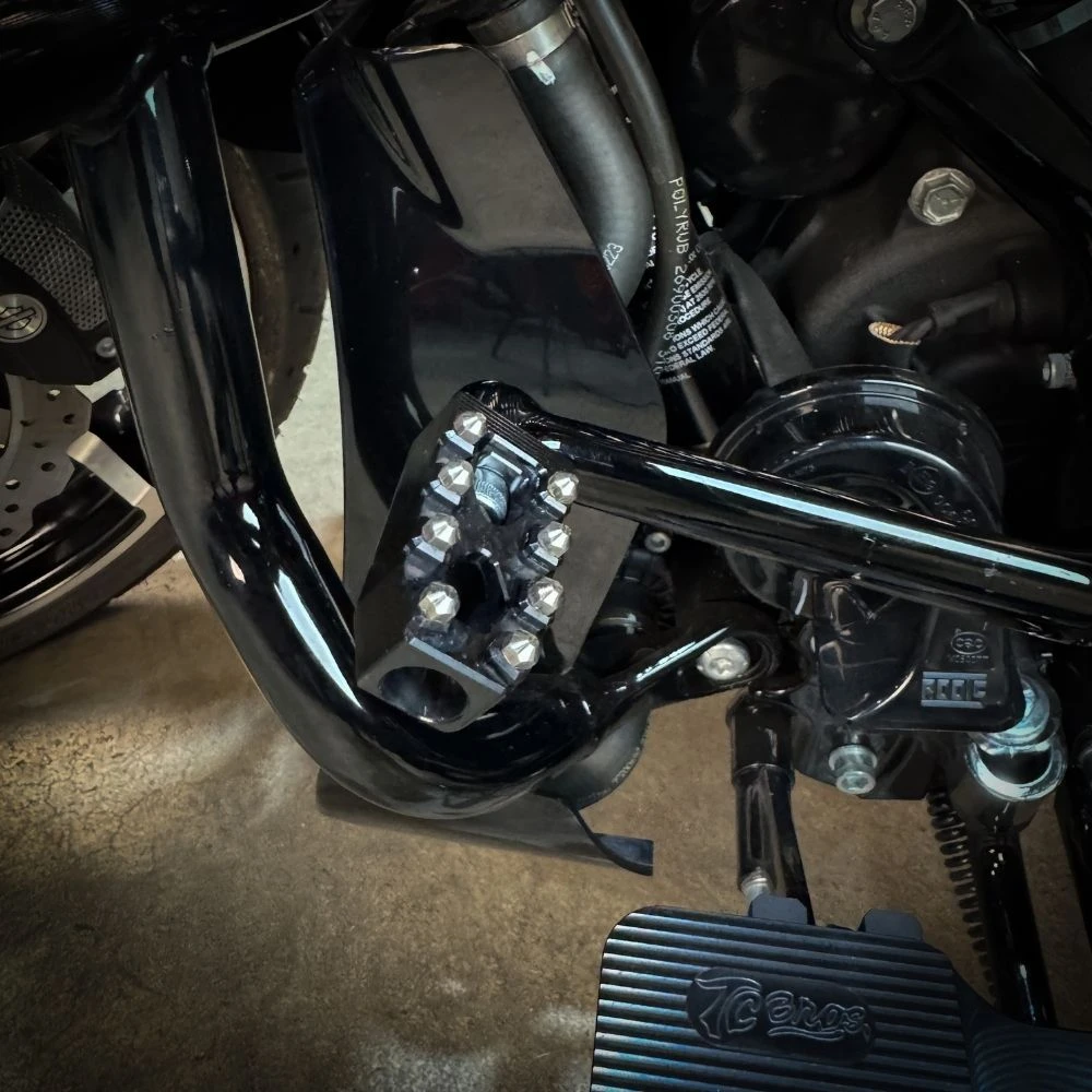 TC Bros. Pro Series MX Shifter / Brake Peg (sold each) is designed with the high performance Harley Davidson rider in mind. Inspired by the off-road racing world and refined for the ultimate on-road experience, this peg provides high traction and stability. Precision machined right here in the USA from the highest quality materials, this shift peg is extremely strong and lightweight. Providing 360 degree adjustability and a design that perfectly complements a set of our Pro Series MX or MX Lite foot pegs, these pegs also work very well as both a shifter peg and a brake pedal on our Pro Series mid controls kits.