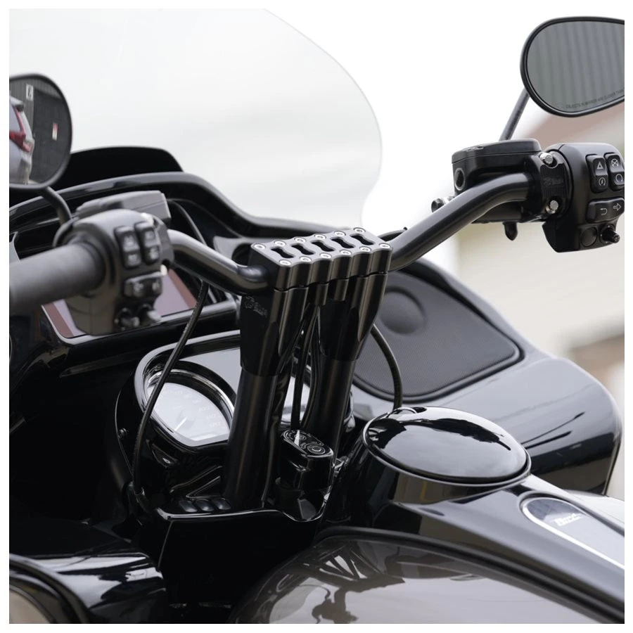 When it comes to handlebar upgrades using the factory Road Glide handlebar risers, the choices are usually limited to “Bagger Apes” which can leave a lot to be desired when it comes to performance. All of the performance engine and brake upgrades in the world can’t fix bad handlebar ergonomics and comfort. Fix the issue by upgrading your ’15–’23 Harley-Davidson Road Glide with the TC Bros. Pro Series Handlebar Riser Adapter, a bolt-on performance solution for installing a nearly limitless selection of T-bars or handlebar risers. Uniquely designed to keep your factory ignition switch intact, this riser adapter is proudly made in the USA from premium materials. Perfect for performance builds or comfort upgrades, this adapter gives you the flexibility to dial in your setup by choosing from a wide range of riser and handlebar combinations that would otherwise interfere with your fairing.