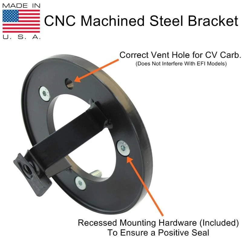 Add classic vintage style to your motorcycle with this TC Bros. Choppers Ripple air cleaner in raw cast finish. The cover is beautifully hand cast from 356-T6 aluminum right here in the USA. Washable cotton gauze filter element provides high performance air flow to your V-Twin. Kit attaches easily using the American made, CNC machined, powder coated steel mounting bracket.Â