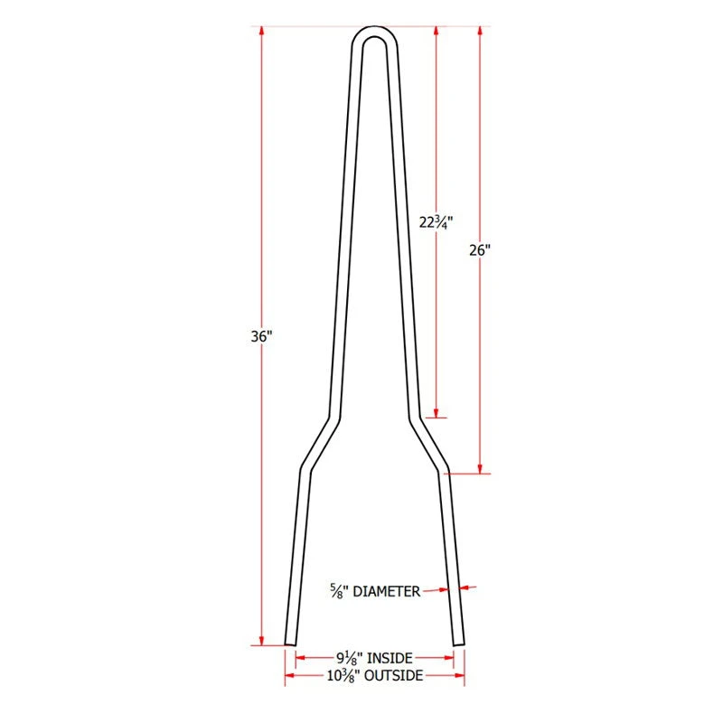 The hoop is constructed from sturdy 5/8″ diameter 1018 cold rolled American steel for high strength and easy welding. The threaded radius bungs allow for mounting bolts to be hidden on the underside of your fender for a professional looking installation. Universal design is perfect for both flat or round profile rear fenders.