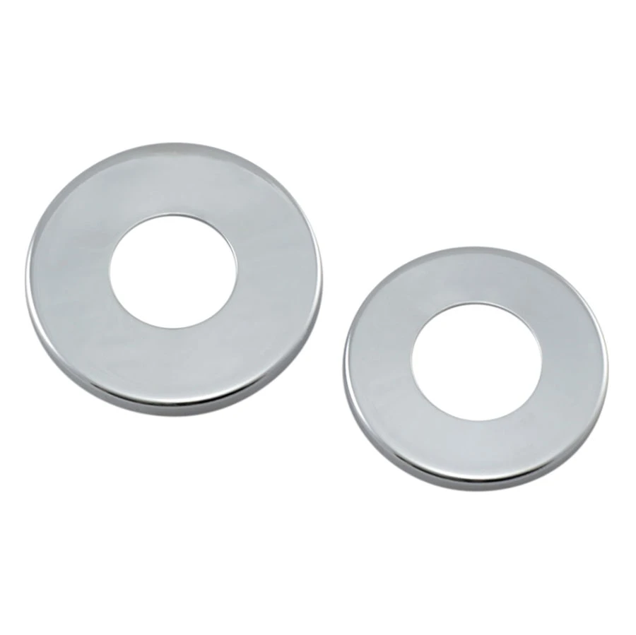 Upper and Lower Fork Stem Dust Shield Covers. Also know as bearing guards or bearing shields, these are exact reproductions (stamped steel construction) of the parts commonly found on most Big Twin and Sportster models with 1″ Timken style steering stem bearings. Sold as a pair. Replaces HD OEM #’s 48361-80 (Upper) & 48365-48A (Lower)