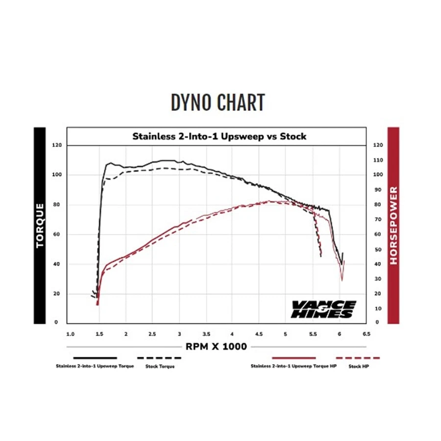 Refined from four decades of racing competition, the Vance & Hines Stainless 2-into-1 Upsweep is a showstopper in terms of performance, but it’s no slouch in the looks department, either. Featuring gorgeous hand-applied TIG welds on lightweight high-grade 304 stainless steel and a brushed finish, this Upsweep is the perfect blend of attractive appearance and raw edge. Now integrating Vance and Hines’ innovative PCX (Power Chamber eXhaust) technology with a chambered high-flow catalyst, the stainless 2-into-1 Upsweep generates stronger low to mid-range torque and an unrivaled roar that can only come from a 2-into-1 exhaust system.
