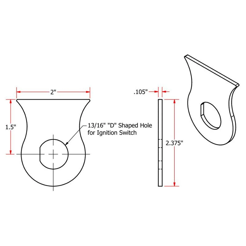 Vintage style curves and contours provide eye appeal while saving you serious time on your build. Most ignition switches require a “D” shaped installation hole to prevent rotation while turning the key. This tab has the proper shaped hole to fit most ignition switches with 13/16″ diameter threads including TC Bros. SKU #108-0021. Sold individually.